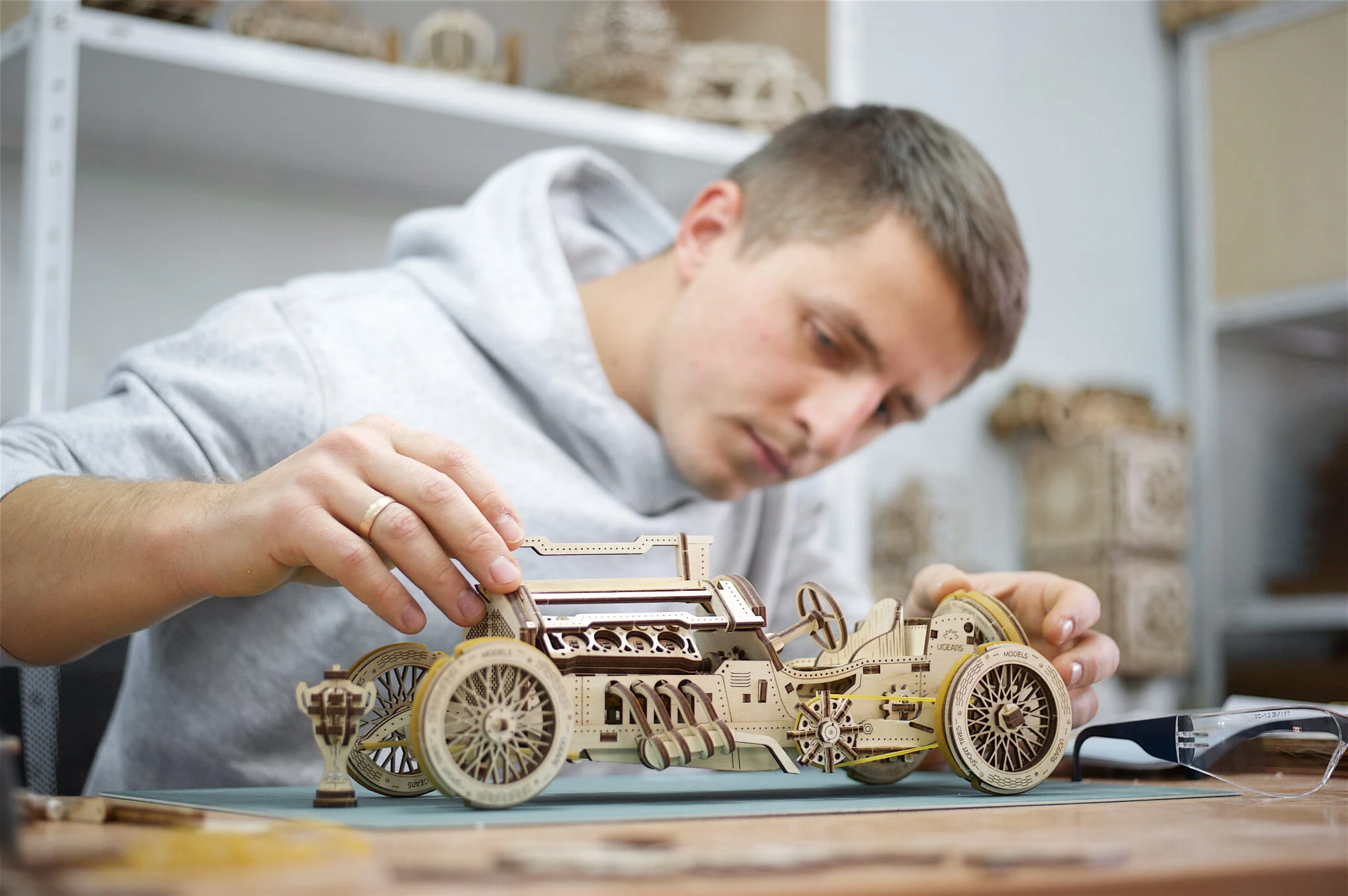 Oldschoolowe auto U-9 Grand Prix model do składania - Ugears