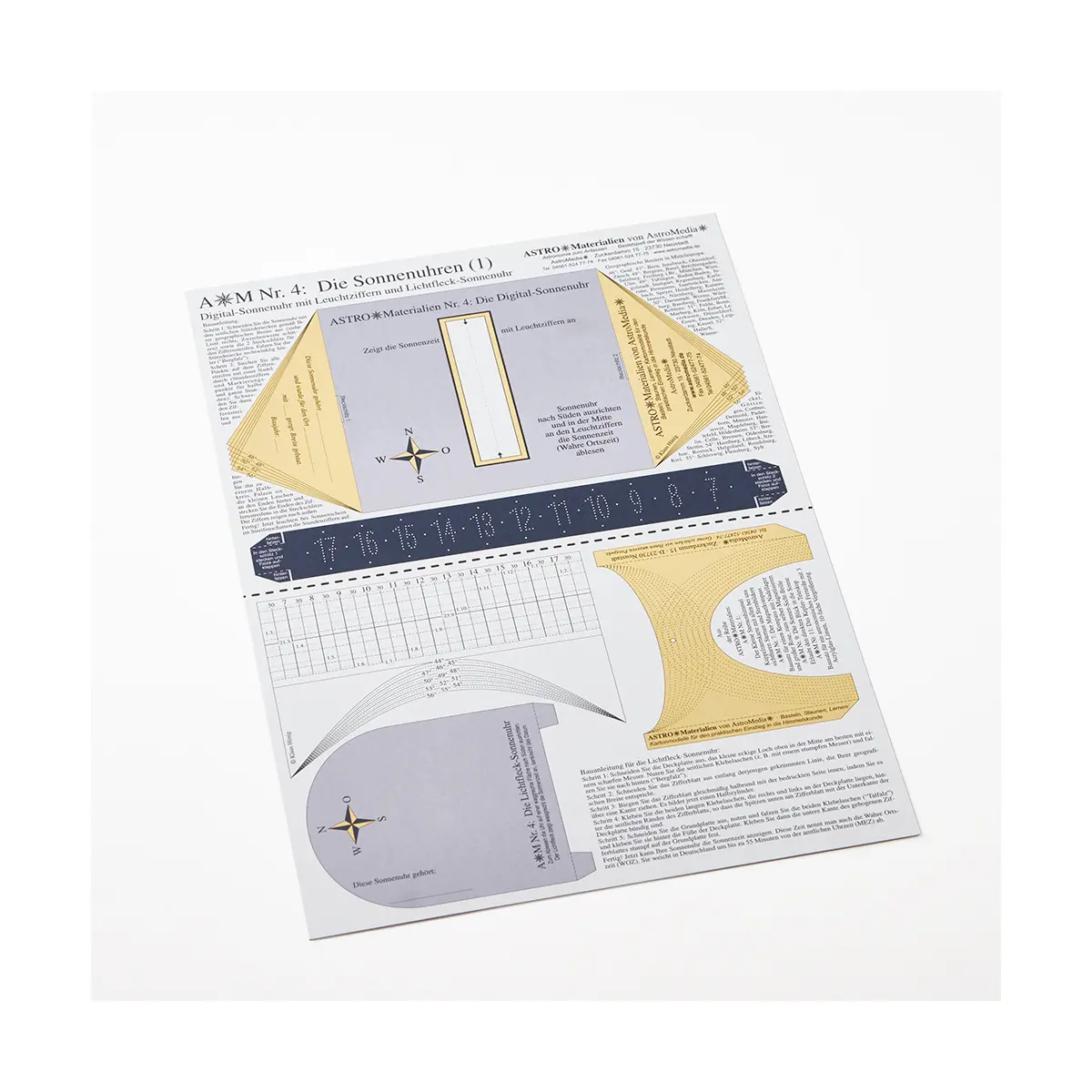 - 1 arkusz tektury zawierający elementy do budowy dwóch zegarów słonecznych