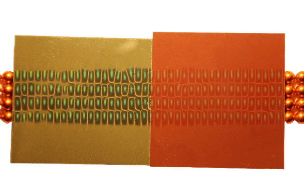 Brązowa folia Nanobrick zmienia kolor pod wpływem pola magnetycznego. Intensywność zmiany koloru zależy od siły pola magnetycznego.