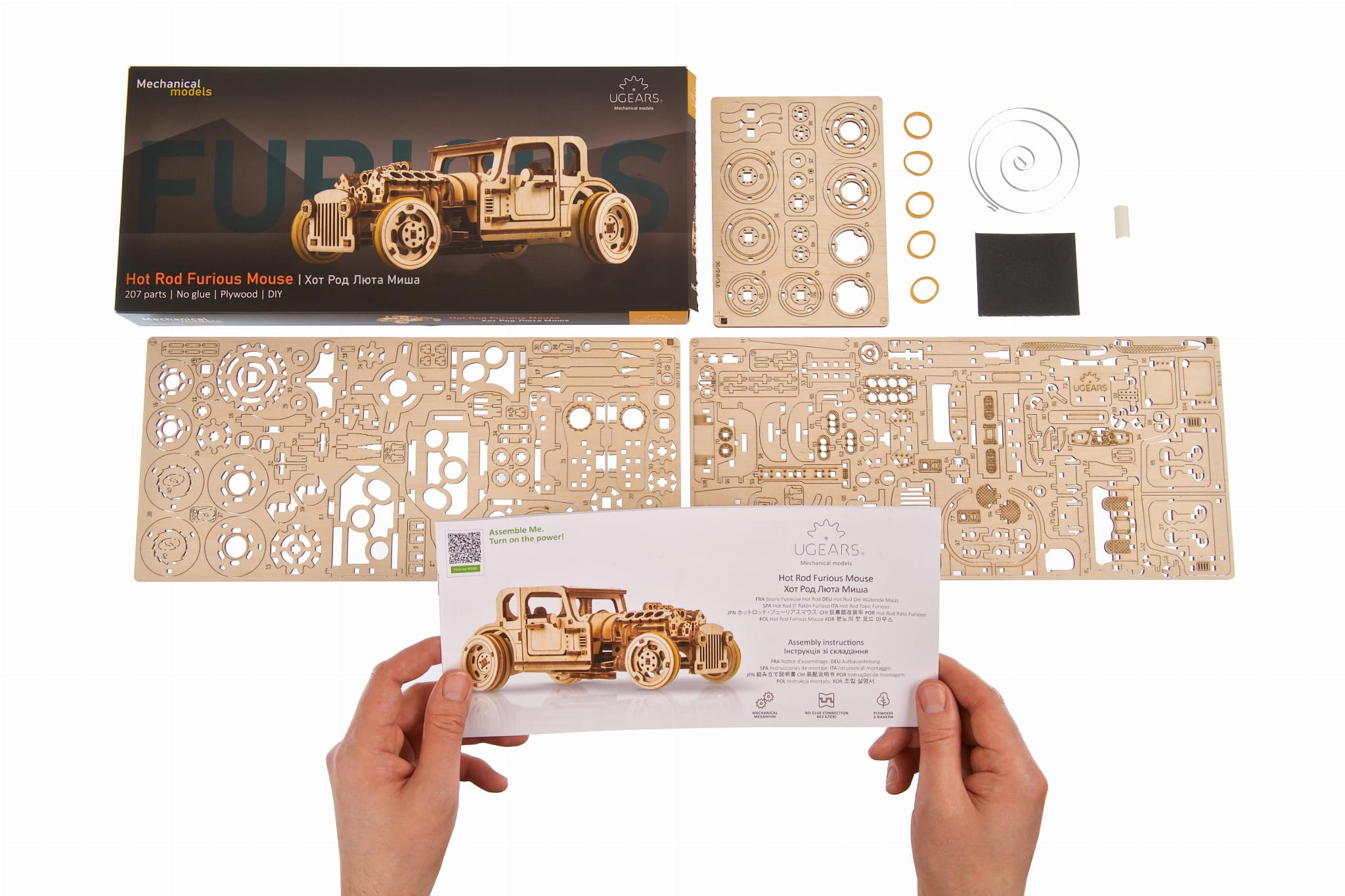 UGEARS podziela tą pasję tworząc model Hot Rod Furious Mouse, pierwszy z nowej kolekcji Dual Motors firmy UGEARS. Zapoczątkuj swoją kolekcję samochodów Dual Motors i przygotuj się na kolejne modele samochodów, które przyprawią Cię o szybsze bicie serca.