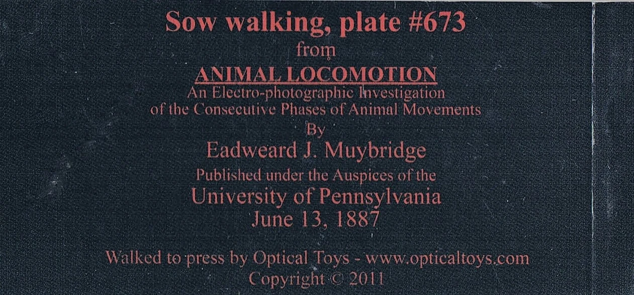 W serii flipbooków Eadwearda Muybridge'e przedstawiamy jego pionierskie zdjęcia wykonywane serią sprzężonych aparatów fotograficznych, na których uwidocznił poszczególne fazy ruchu. Muybridge prezentował swoje zdjęcia publiczności za pomocą zoopraksiskopu - my prezentujemy je w formie podręcznego kineografu/flipbooka.