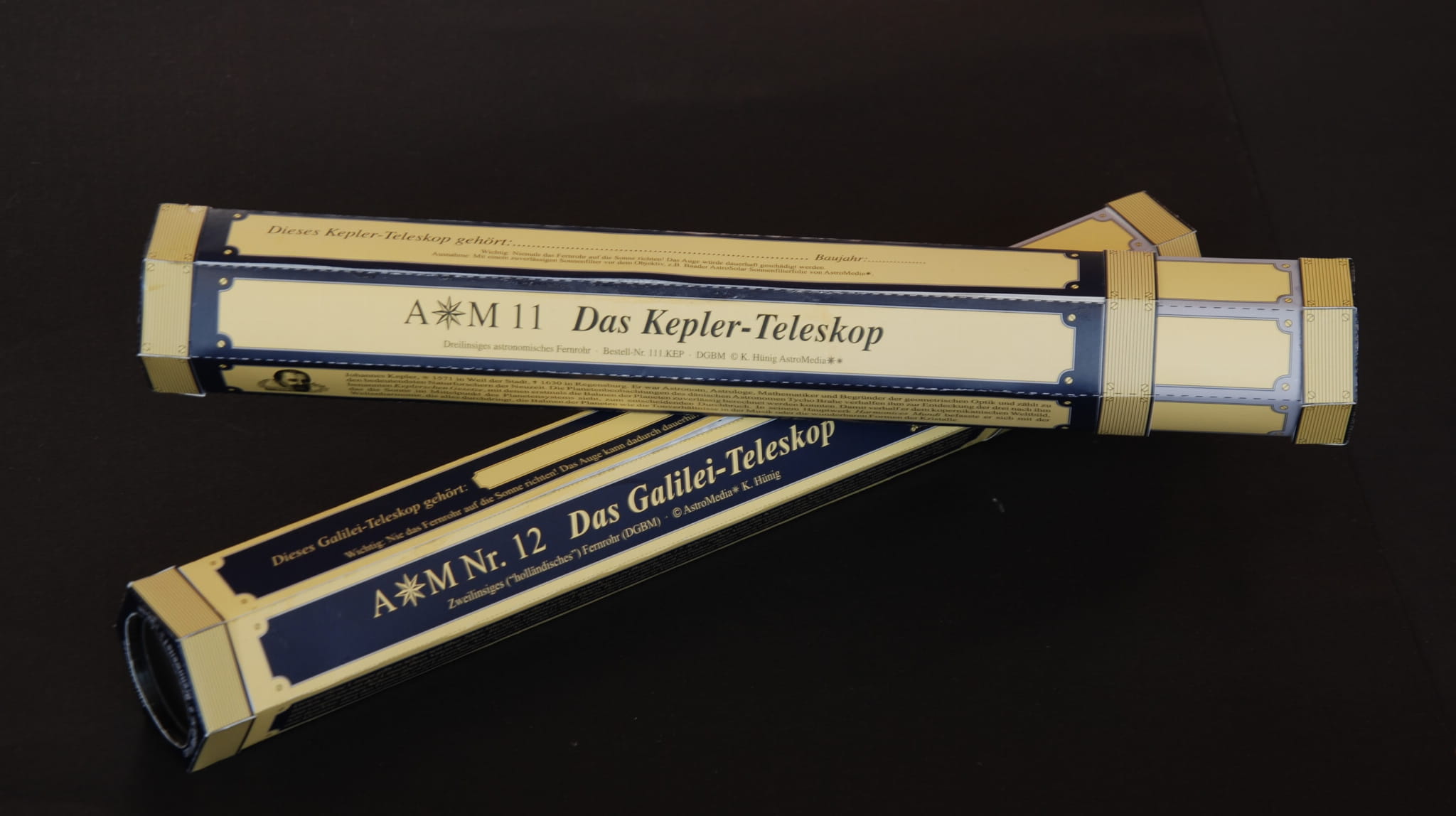 W zestawie AstroMedia znajdziesz dwie lunety i powiększeniu 10x każda. Budując lunetę Galileusza i lunetę Keplera, będziesz miał okazję na porównanie budowy i działania dwóch różnych konstrukcji teleskopów. Pozwoli to docenić wynalazek Keplera i zrozumieć popularność tej konstrukcji.