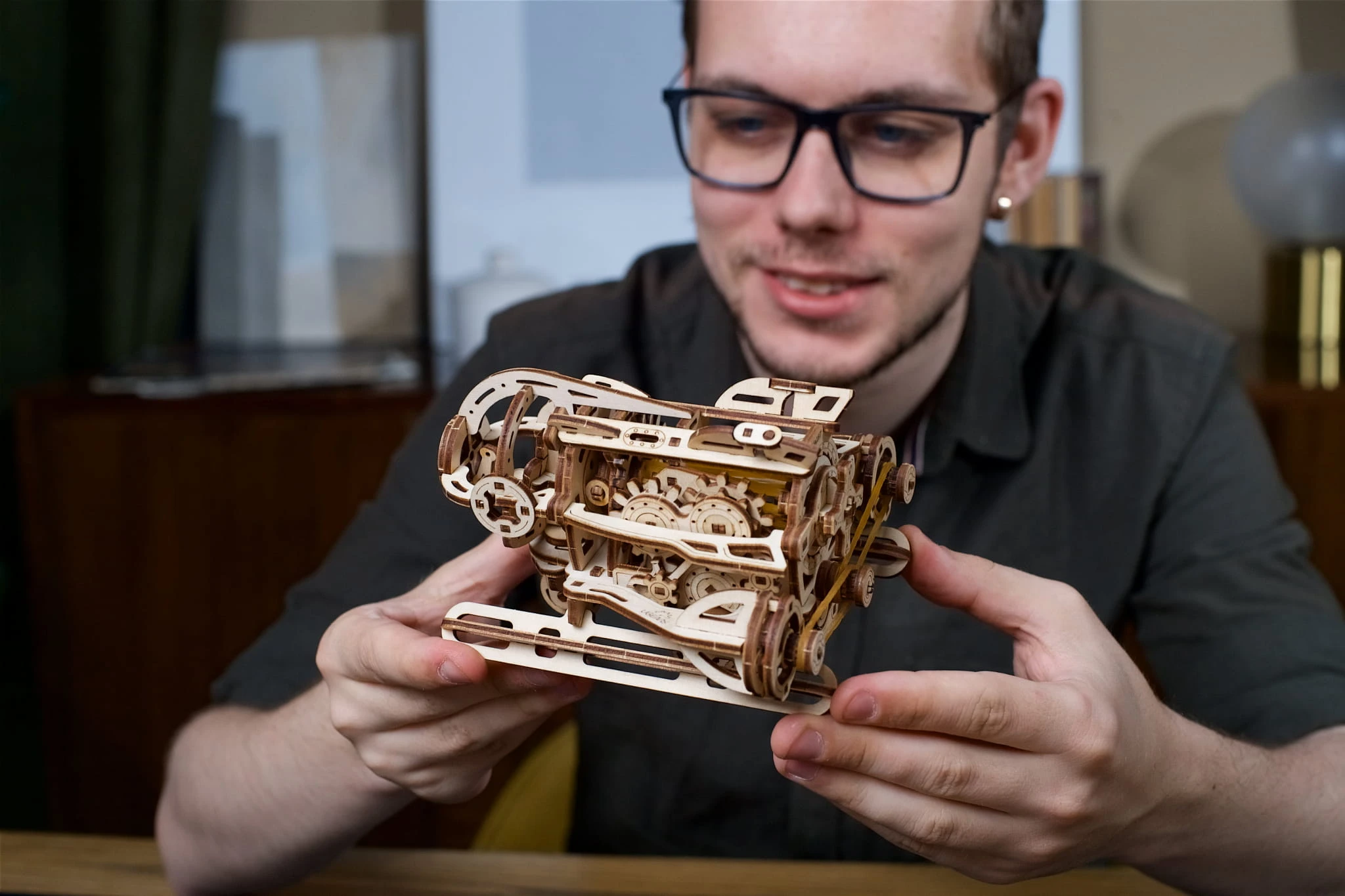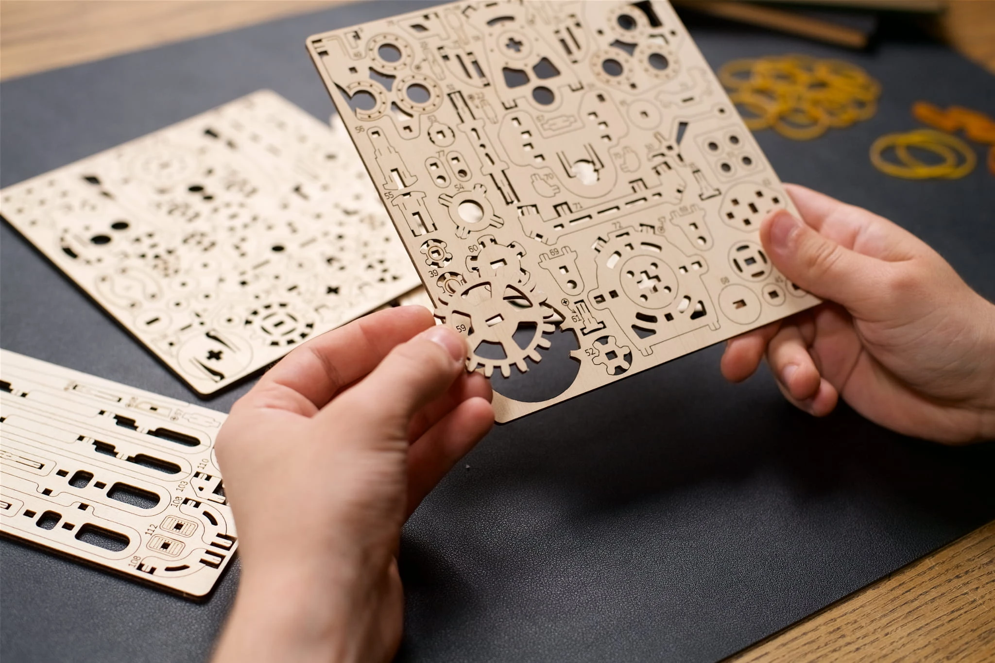 Model złożysz w około 2-3 godziny z 200 części. Do montażu nie potrzeba kleju, wystarczy wcisnąć staranie wycięte elementy sklejki jeden w drugi.