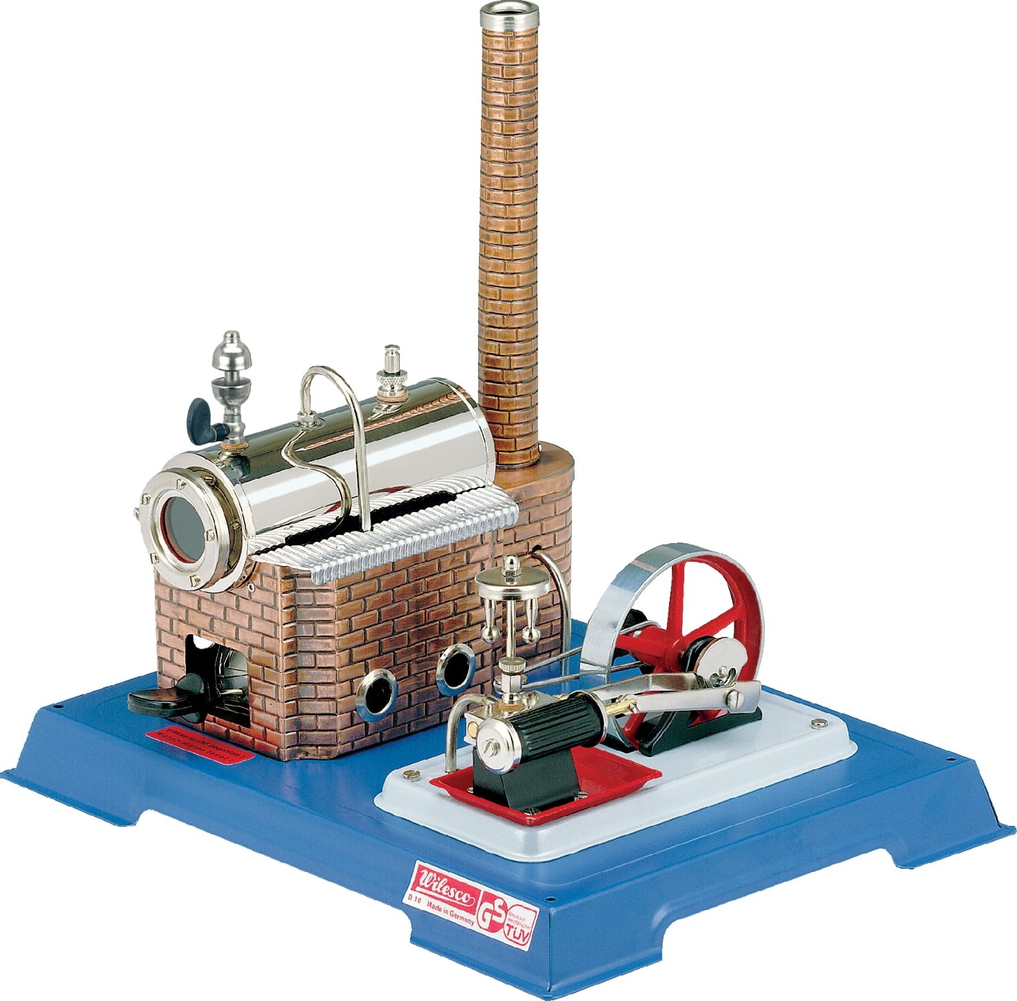 Dzięki dwustronnie działającemu tłokowi Wilesco D10 jest znacznie mocniejsza od maszyn z tłokiem oscylacyjnym. Dodatkowo maszyna Wilesco D10 jest wyposażona w odśrodkowy regulator obrotów zapewniający pełną kontrolę nad przepływem pary, a jej koło zamachowe może obracać się w obydwie strony. Nie można zapomnieć o prawdziwym uruchamianym ręczną dźwignią parowym gwizdku, który wydaje dźwięki niczym prawdziwy parowóz.