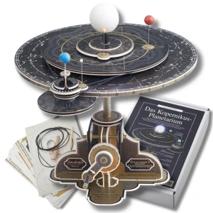 Zestaw do budowy pięknego, ruchomego modelu układu słonecznego, gdzie planety wędrują dookoła podświetlonego diodą LED Słońca, księżyc okrąża Ziemię i, co rzadkie w takich modelach, oś Ziemi utrzymuje stałe pochylenie w przestrzeni, co jeszcze lepiej oddaje rzeczywistość. Całość dopełnia prosty mechanizm oparty na paskach napędowych poruszający układ z szybkością 1 tygodnia na 1 obrót korby napędowej. Solidny sztancowany karton pozwala na wyjęcie elementów bez wycinania.