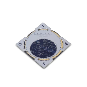 Na tej klasycznej obrotowej mapie nieba odnajdziesz położenie wszystkich gwiazd i konstelacji widocznych w Europie Środkowej o danej godzinie i dniu roku. Obsługa jest bardzo prosta: obracasz dysk mapy aby ustawić porę dnia i miesiąc, a wycięcie pokaże całe widoczne w danej chwili niebo.