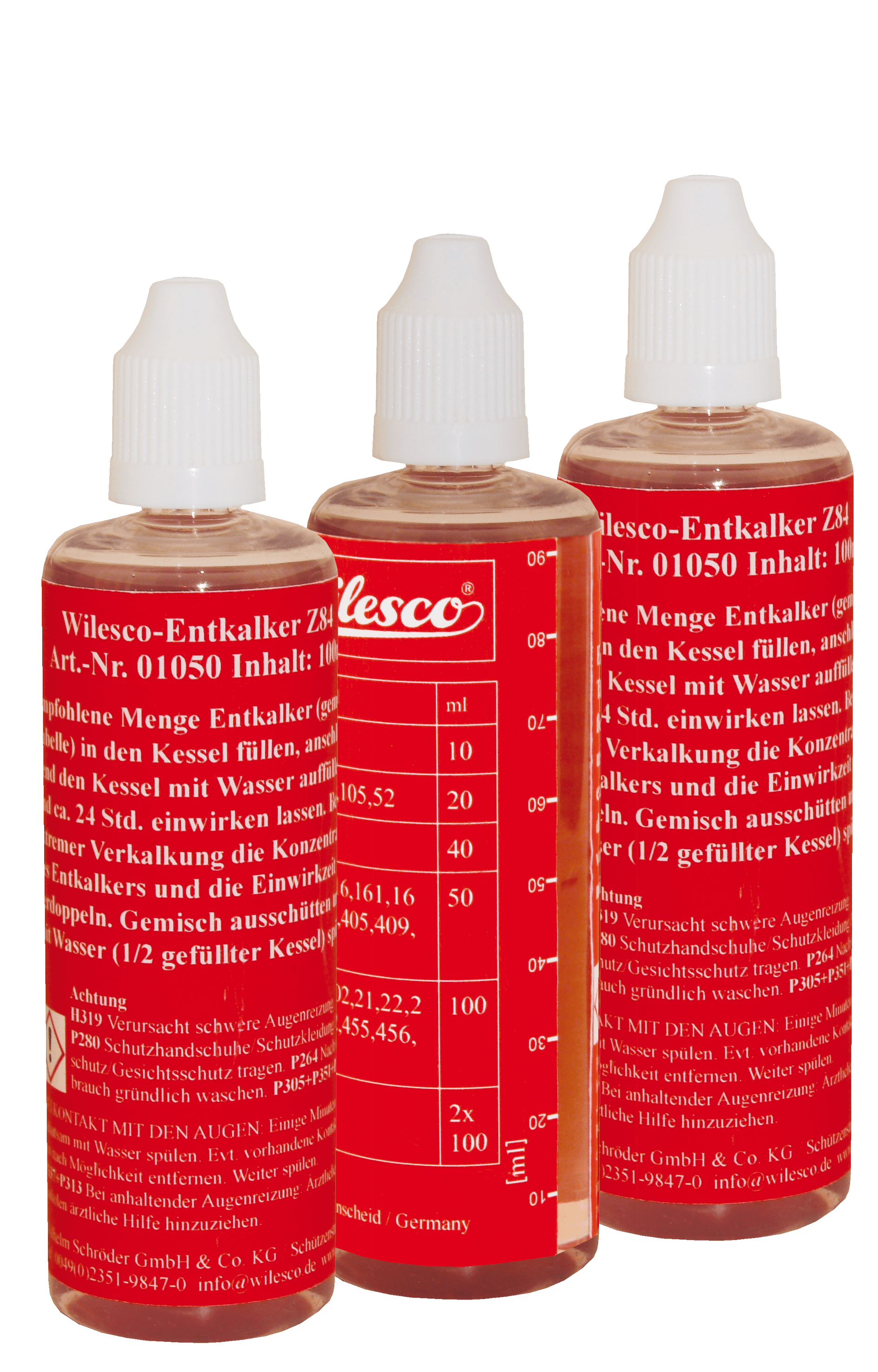 - Buteleczka odkamieniacza Wilesco z dozownikiem o pojemności 100 ml.