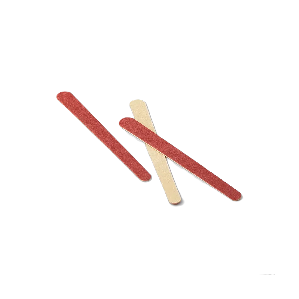 Zestaw 3 pilniczków z elastycznego drewna oklejonych z jednej strony drobnym, z drugiej średnioziarnistym, wytrzymałym papierem ściernym.