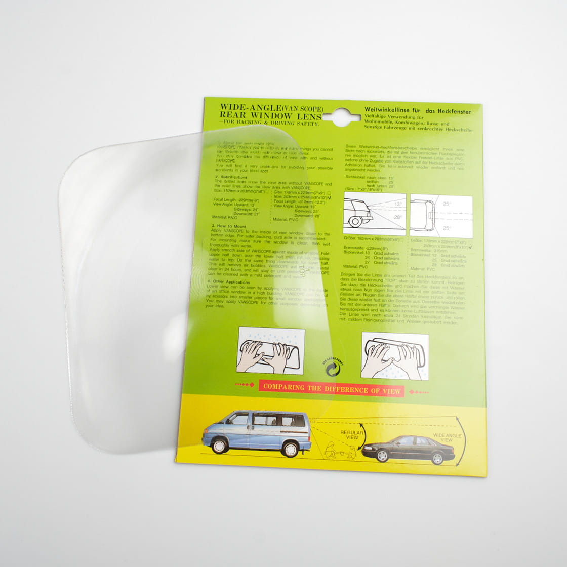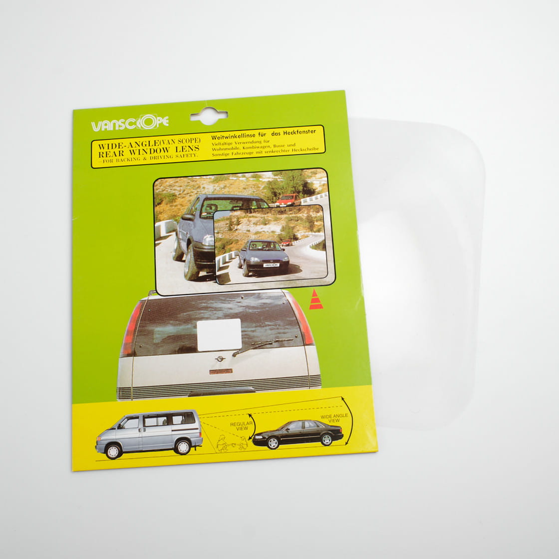 Soczewka Fresnela firmy Vanscope o ogniskowej f = -310 mm może być zainstalowana na tylnej szybie samochodu ułatwiając parkowanie i zwiększając bezpieczeństwo przy cofaniu.