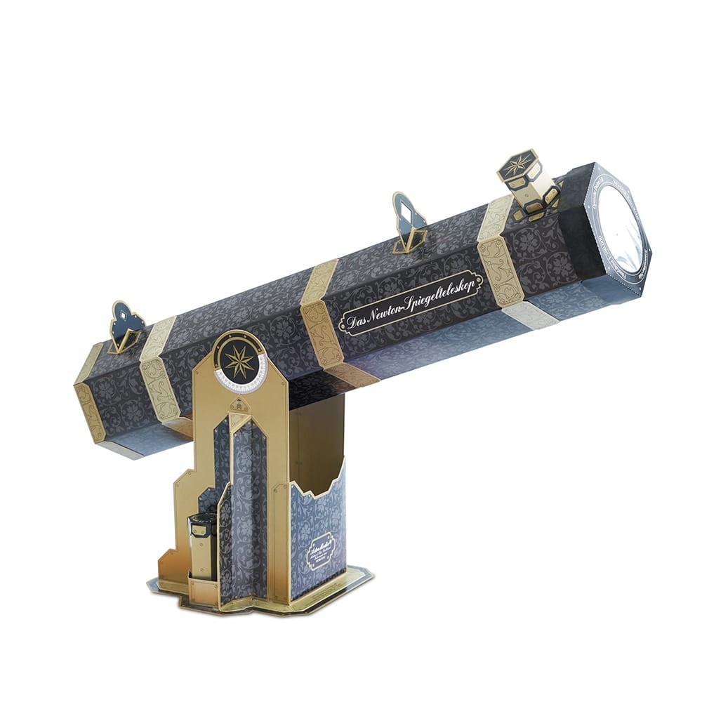 Za pomocą tego zestawu zbudujesz teleskop Newtona na montażu azymutalnym wraz z kompletem dwóch wymiennych okularów. Teleskop jest w pełni funkcjonalnym urządzeniem wzorowanym na XVII-wiecznym teleskopie zbudowanym przez Newtona - odzwierciedla możliwości obserwacyjne ówczesnego przyrządu. Umożliwia obserwacje z 16 i 30-krotnym powiększeniem.