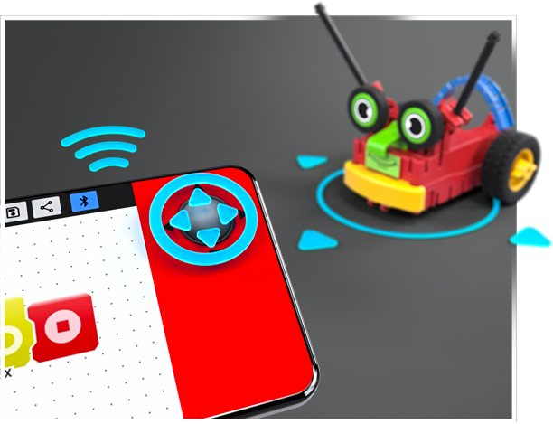 Zawarte w zestawie dwa silniki i dwa czujniki są w pełni zintegrowane z blokiem. Oznacza to, że wszystko, co użytkownicy muszą zrobić, to włączyć je, używając bluetooth połączyć się ze smartfonem i zacząć programować ! Proste graficzne środowisko programowania ze wstępnie zaprojektowanymi przykładami jest dostosowane do wieku dziecka. To idealny sposób na rozpoczęcie przygody ze światem robotyki!