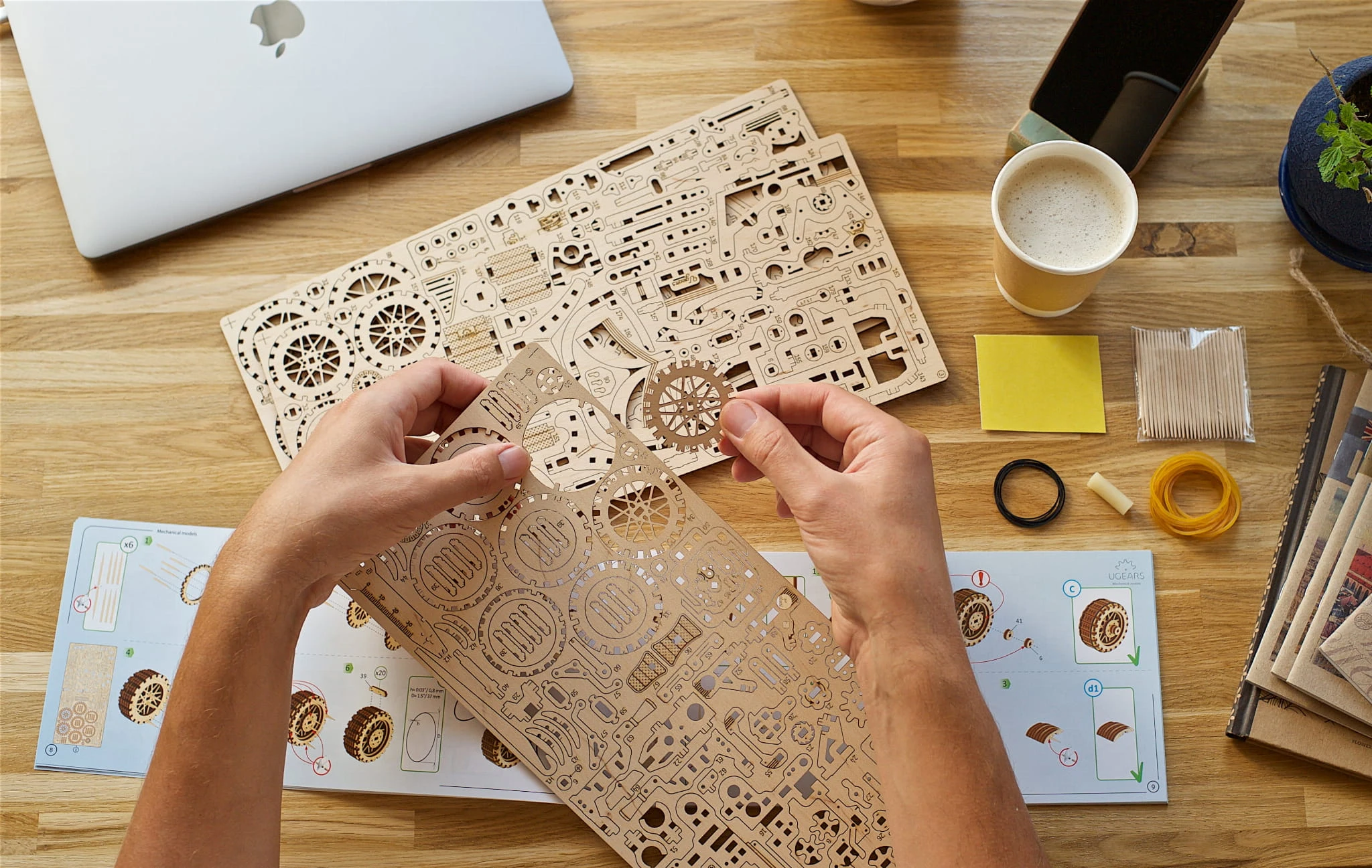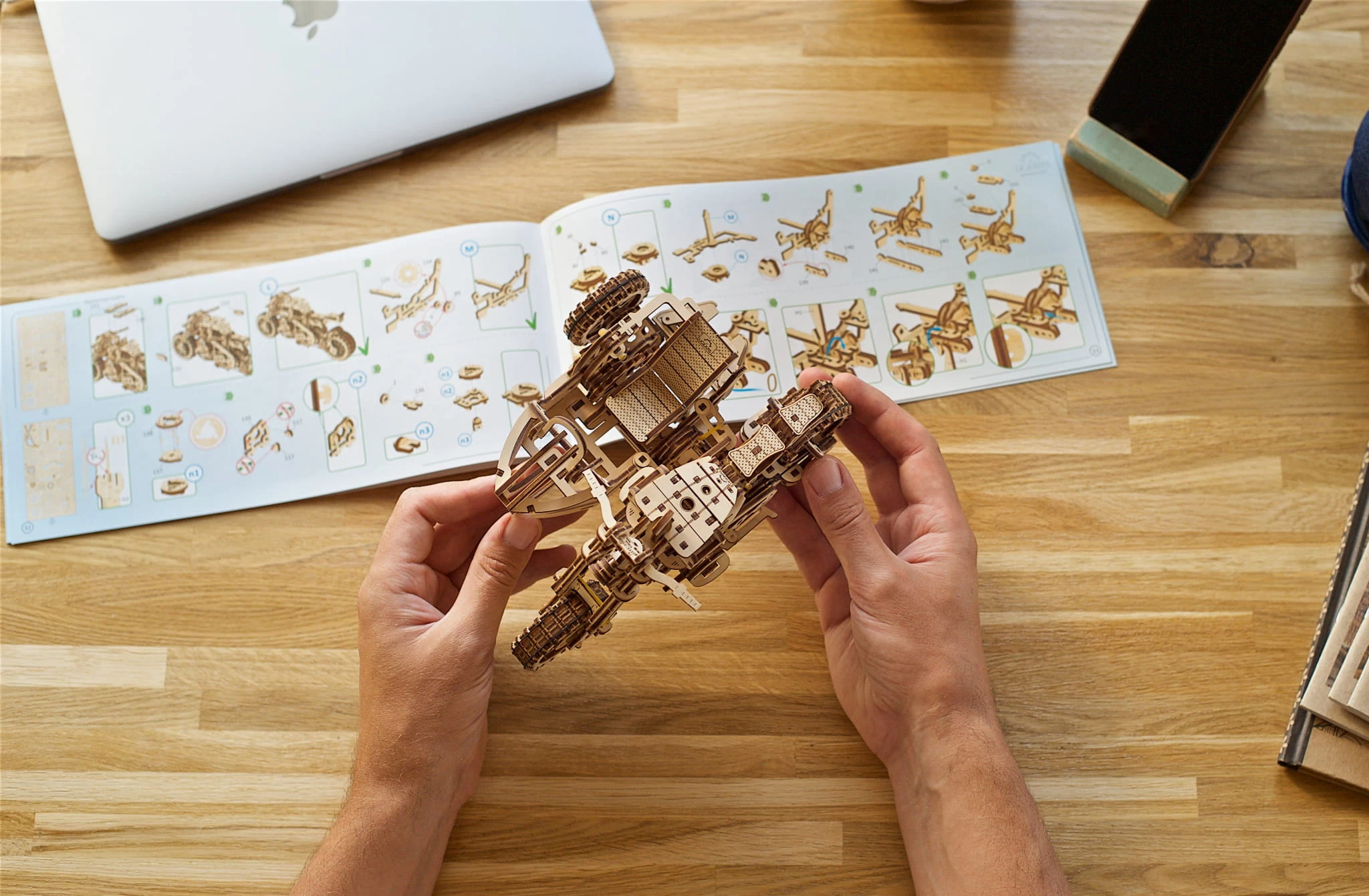 Wszystko zmonitujesz podobnie jak pozostałe modele ze sklejki Ugears bez użycia kleju, wyjmując starannie przycięte elementy z arkusza sklejki. Ilustrowana instrukcja wyjaśni wszelkie wątpliwości, a przypadkowo zniszczone podczas montażu elementy łatwo i bezpłatnie wymienisz na nowe.