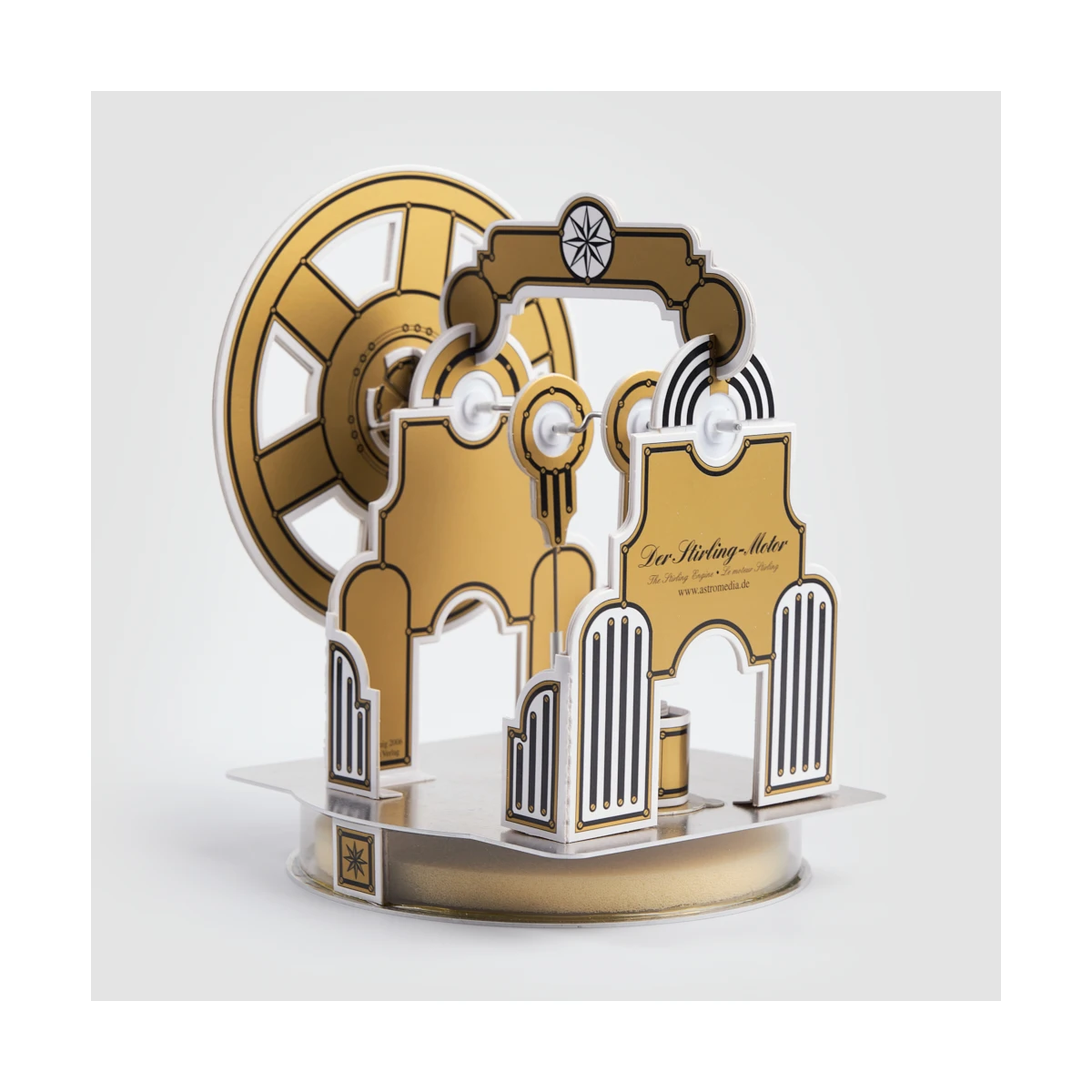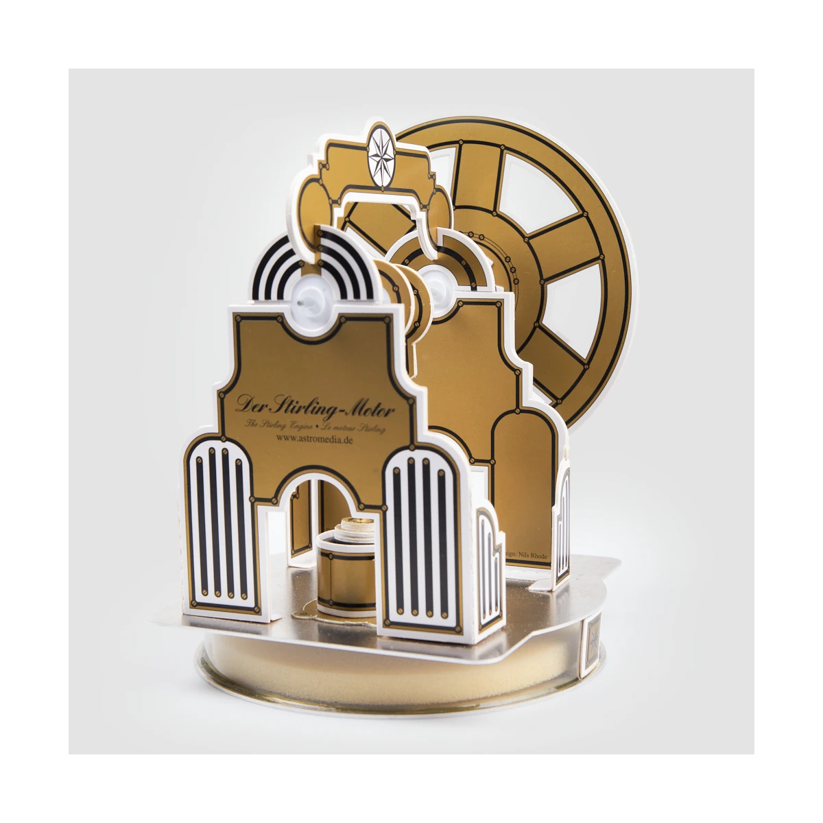 Solidna pięknie lakierowana tektura plus precyzyjnie wykonane akcesoria pozwolą Ci zbudować model silnika Stirlinga typu gamma, który postawiony na kubku gorącej herbaty może chodzić nawet godzinę, zadziwiając pół biura.